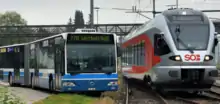 There are several bus services departing from Wattwil railway station. The services are provided by Busbetrieb Lichtensteig–Wattwil–Ebnat-Kappel (BLWE),[2][3] Schneider Busbetriebe[4] and Postauto.[5] The bus lines are as follows: