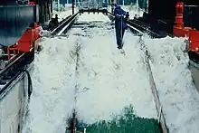 {{cite journal}}: Cite journal requires|journal=(help) - Steendam, G.J.; Provoost, Y.; van der Meer, J. (2012). "Destructive wave overtopping and wave run-up tests on grass covered slopes of real dikes". Coastal Engineering Proceedings. 1 (33): 64. doi:10.9753/icce.v33.structures.64. ISSN 2156-1028.
