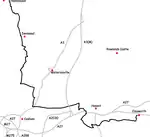 These maps show the footpath in relation to nearby major roads. Maps are not on the same scale.