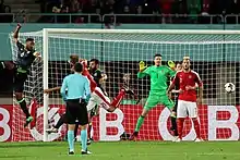 Hennessey played in all ten of Wales' qualifying matches for UEFA Euro 2016, conceding just four times, as they reached their first major international tournament since the 1958 FIFA World Cup. He was named in Wales' 23-man squad for the tournament as first choice goalkeeper but was forced to miss the opening game of the tournament, a 2–1 victory over Slovakia, after suffering a back spasm prior to the match, being replaced by Danny Ward.[62] Hennessey started the remaining matches as Wales progressed to the semi-finals of the tournament before losing to Portugal.[63]