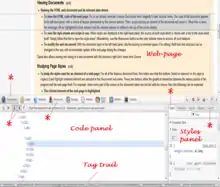 In addition to selecting and editing, the HTML elements panels will usually also display properties of the DOM object, such as display dimension, and Cascading- style sheet properties.[15]