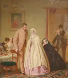 The Oxford English Dictionary does not record any occurrences of the phrase "wedding breakfast" before 1850, but it was used at least as far back as 1838.[lower-alpha 1] This would agree with the quotation above, which suggests the phrase came into use about the 1830s.