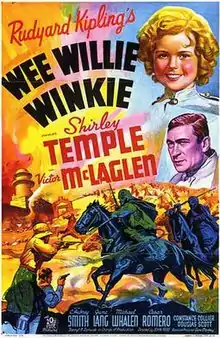 Wee Willie Winkie is a 1937 American adventure drama film directed by John Ford and starring Shirley Temple, Victor McLaglen, and Cesar Romero. The screenplay by Julien Josephson and Ernest Pascal was based on a story by Rudyard Kipling. The film's story concerns the British presence in 19th-century India. The production was filmed largely at the Iverson Movie Ranch in Chatsworth, California, where a number of elaborate sets were built for the film. This film was the first of three in which Shirley Temple and Cesar Romero appeared together, second was Ali Baba Goes to Town (1937) and The Little Princess (1939).[3]