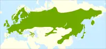 - Betula pendula subsp. mandshurica (Regel) Ashburner & McAll. – eastern Asia and western North America; treated by some botanists as Betula platyphylla[14]