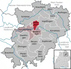Location of Weißbach within Hohenlohekreis district ![]() | |