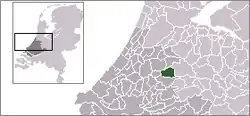 ![]() The village (dark red) and the statistical district (light green) of Nieuwerbrug in the municipality of Bodegraven. | |