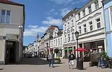 In 1905, Neustadt had a Protestant church, two Catholic churches, a synagogue, a grammar school, a preparatory school for a training college for school teachers, a training college for evangelical school teachers, a mental asylum, a local court, a forest office, cigarette factories, sawmills, a brewery, a cattle trade and wood trade as well as grain trade.[4] During the Partitions, the German authorities led a systemic campaign of Germanization against local the Polish and Kashubian populations, which resisted by organizing the secret patriotic organization Zwiazek Filomatów, distributing the Polish newspaper Gazeta Gdańska, and by establishing various local economic initiatives.[5]