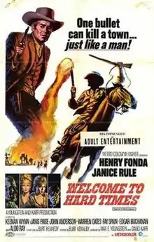 Welcome to Hard Times is a 1967 American Western film directed by Burt Kennedy and starring Henry Fonda as the leader of a dying town who is too weak to stand up to a brute terrorizing the few remaining residents.[1] It is based upon a novel by the same name by E. L. Doctorow.[2]