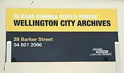 The Wellington City Archives were formally established in 1994, and Michelle Redward was appointed in March as Council archivist to supervise the move.[7] The new Wellington City Archives was opened by Mayor Mark Blumsky on 26 June 1996, in an environmentally-controlled and earthquake-proof facility off Tory Street, with 5 km of shelving over 730 square metres of storage area.[5][8] The Archives were expanded in 2005 to 1000 square metres, creating a work room and meeting room.[9][1] In 2007, more than 370,000 collection items and 9,000 scanned images were made available online, including large numbers of digitised building permit and consent records.[10]