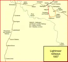 - the Wellington and Severn Junction Railway from Ketley Junction (near Wellington) to Lightmoor;