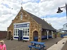There has been a port at Wells for over 600 years. The harbour is protected by salt marshes behind a sand bar. Because it is a natural safe haven from the unpredictable North Sea weather the Port of Wells was one of England's major harbours in Tudor times and a thriving, centre for shipping and maritime industry in the 18th and 19th centuries. Its greatest period of prosperity was probably from 1830 to 1860. The stone quay side was constructed in 1845 following an Act of Parliament the previous year. The coming of the railway in 1857 marked the beginning of decline though there was a resurgence from 1960 to 1989 when coasters bringing fertilizer and animal feed came in some numbers. The Granary with its distinctive gantry was built around 1904;[3] it has now been turned into apartments. The gantry allowed grain to be transferred between the building and ships without disrupting road traffic. The railway closed in 1964 and in 1976, the Wells Harbour Railway was constructed to link the town with the beach and Pinewoods Holiday Park. It replaced a withdrawn bus service.[4]