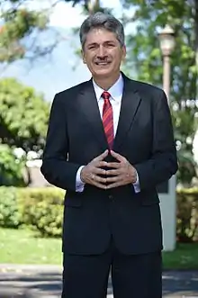 Ramos was an economist for the Central Bank of Costa Rica between 1987 and 2006 in various positions, a parliamentary adviser between 2006 and 2014 for the legislative faction of the Citizens' Action Party and a postgraduate professor at the Fidelitas, Fundepos and Costa Rica universities.[1] He was appointed minister of economy by President Luis Guillermo Solis, a position he held between May 1, 2014, and February 2, 2017, when he resigned to seek the presidential nomination from his party held at the National Citizen Convention 2017, but he lost the primary. He participated again in the National Citizen Convention 2021 and won the presidential nomination from his party on August 30, 2021.