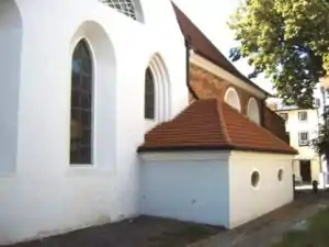 The German church was painted at this time in the neo-gothic style, which replaced its original late Baroque colours. Towards the end of the 19th century, the western vestibule of the German church was renovated. The original roof construction was preserved but the timber framing was replaced with a brick construction. A new organ from the firm Schlag & Söhne from Schweidnitz (Schlesien) was added in 1899. New windows were put in at the same time.