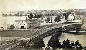The British Government never made use of the reserve, but instead leased land along the north shore of the creek. Richard and Joseph Dobson of Westmount built a dam on the Creek and the present Argyle Street and erected a gristmill for the grinding of grain. Photos of the Park from around 1895 show the old mill building near the site of the existing Bandshell. The Dobsons sold the mill to Murdock Morrison, who with his son ran the mill both as a grist mill and wool carding mill until 1913. The road that led to the mill from the countryside, now Argyle Street, was known as the "Old Mill Road". In 1946, the city of Sydney bought the land.[4]