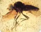 Invertebrates are commonly preserved in the Wessex Formation. Freshwater bivalves can be found including unionids such as Margaritifera, Nippononaia, and Unio. These bivalves are helpful in reconstructing what the freshwater paleoenvironment may have been like during the formation's deposition. Specimens of Viviparus, a genus of freshwater snail, have also been found. While compression fossils of insects are found in the overlying Vectis Formation, all insect fossils in the Wessex formation are found as inclusions in amber. Amber can be found present as a rare component in plant debris beds in the Wessex formation both on the Isle of Wight and the Isle of Purbeck, however the only significant concentration and where all of the inclusions have been found is a lag channel in the L6 plant debris horizon just south-east of Chilton Chine. Only four species from the amber have been formally described, Cretamygale chasei a mygalomorph spider, Dungeyella gavini[19] Libanodiamesa simpsoni, both chironomid midges, as well as Embolemopsis maryannae, a embolemid parasitic wasp. However a table of undescribed taxa has been given,[19] and several images of some of the undescribed taxa have been released from various sources, including multiple chironomids, and a therevid dipteran.[20]