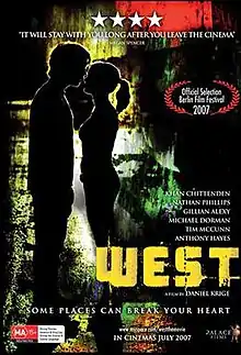 West is a 2007 Australian film written and directed by Daniel Krige and starring Khan Chittenden, Nathan Phillips, Gillian Alexy and Michael Dorman. The film had its world premiere at the 2007 Berlin International Film Festival and was scheduled for Australian release on 5 July 2007 at the Chauvel Cinema in Sydney and the Nova Cinema in Melbourne with other cities to follow.