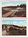 In 1888 an investment group called Sinclair and Rhodes, which included Lee Wiley Sinclair from Salem, Indiana, and E. B. Rhodes, acquired the West Baden hotel and 667 acres (270 hectares) of land for $23,000.[17] Although the hotel was destroyed by fire in 1891, it was rebuilt, and over the next several years Sinclair bought his partners' interest in the hotel and became its sole owner.[13] Sinclair turned the facility into an elaborate resort. Advertised as the Carlsbad of America,[18] the cosmopolitan resort included a casino, an opera house, and a covered, two-deck, one-third-mile oval bicycle and pony track. A lighted baseball diamond in the center of the track was used as the spring training grounds for several major league teams including the Cincinnati Reds, Chicago Cubs, and Pittsburgh Pirates, among others.[19]