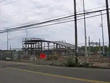 In February 2005, the City of West Haven released a proposal for the West Haven station that modified the state's current plan, with less land taking adjacent to the station and a pedestrian bridge across Saw Mill Road to a 629-space garage in the Armonstrong North building. The city's proposal also included transit-oriented development, with a 325-unit residential development on the Armstrong South property and mixed-use buildings along Hood Terrace and Railroad Avenue.[13] On June 19, 2006, West Haven Mayor John M. Picard and U.S. Representative Rosa L. DeLauro announced that DeLauro had secured $1.2 million in federal funding for the project, which brought the federal funding commitment as of that date to $3.2 million.[14][15] The Final Environmental Impact Statement, released in June 2007, estimated the capital cost for the station at $66.56 million including land acquisitions, with a total of 1,074 parking spaces split between lots and a garage. Ridership was estimated at 1,620 daily riders at opening and 1,955 by 2025, with about 20% new transit users rather than diverted from New Haven or Milford stations.[11]