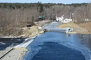 West Hopkinton was once a thriving village with many businesses such as several mills including the Kingsbury & Davis Machine Company, a creamery, grocery store and a number of working farms. West Hopkinton had its own post office which opened on May 29, 1857; a small railroad depot on the original Contoocook River Railroad line, the Rowell's Covered Bridge and New Henniker Bridge.[2][3]