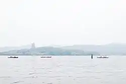 West Lake (Chinese: 西湖; Wu Chinese: [si ɦu]) is a freshwater lake in Hangzhou, China. It is divided into five sections by three causeways. There are numerous temples, pagodas, gardens, and natural/artificial islands within the lake. Gushan (孤山) is the largest natural island and three artificial islands: Xiaoyingzhou (小瀛洲), Huixin Pavilion (湖心亭), and Ruan Gongdun (阮公墩) stand at the middle of the lake. Leifeng Pagoda (雷峰塔) and Baochu Pagoda (保俶塔) are separated by the lake. Mirroring each other, the basic pattern of "one mountain, two towers, three islands, three banks, and five lakes" is formed.