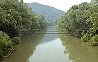 West Logan is located at 37°52′10″N 81°59′14″W (37.869557, -81.987282).[6] The town primarily occupies bottomland along the west bank of the Guyandotte River, though its municipal boundaries stretch westward to the summit of Rattlesnake Knob. The community of Peach Creek lies across the river to the northeast, and the community of Aracoma lies to the southwest.