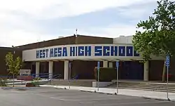 West Mesa High School (WMHS) is a public senior high school in Albuquerque, New Mexico, located on the city's West Mesa. It is a part of the Albuquerque Public Schools. The school colors are scarlet, royal blue and white, and their mascot is the Mustang.[2]