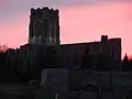 The Cadet Chapel at the United States Military Academy is a place of Protestant denomination worship for many members of the United States Corps of Cadets. The chapel is a late example of Gothic Revival architecture, with its cross-shaped floor plan, soaring arches, and ornate stone carvings. It houses the largest chapel pipe organ in the world,[1] which consists of 23,511 individual pipes.[2][3][4][5] The Cadet Chapel dominates the skyline and sets the architectural mood of the academy.[6] Designed by architect Bertram Goodhue and completed in 1910,[7] it replaced the neoclassical Old Cadet Chapel which had been built in 1836. The Old Cadet Chapel was deconstructed and relocated to the entrance of the West Point Cemetery, where it stands today.[8]