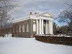 An improved road to the cemetery was constructed in 1840, and the caretaker's cottage was erected in 1872.[1] The cemetery is home to several monuments, including the Dade Monument, Cadet Monument, Custer Monument, Wood's Monument, and Margaret Corbin Monument.