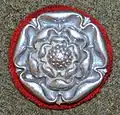 By late March 1915, training had progressed to the point where the division was warned for a potential move overseas. By mid-April, the division was in France, and was to remain on the Western Front as part of the British Expeditionary Force (BEF) for the rest of the war.[3] Soon after arrival the division, although unfamiliar with trench warfare, was assigned to Lieutenant General Sir Henry Rawlinson's IV Corps of the BEF, and played a relatively minor role in the Battle of Aubers Ridge, where Major General Baldock, the divisional commander, was wounded in action. The division was redesignated the 49th (West Riding) Division on 15 May 1915 and given the White Rose of York as its insignia.[3] The division's three brigades were also redesignated, the 1st, 2nd and 3rd West Riding Brigades becoming the 146th (1st West Riding), 147th (2nd West Riding) and 148th (3rd West Riding) Brigades, respectively.[3] After Aubers Ridge, the division, now commanded by Major General Edward Perceval, was not engaged in any major battles until 19 December 1915, when the division, now part of Lieutenant General John Keir's VI Corps, participated in the first Phosgene attack but suffered comparatively few losses.[3]