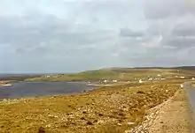 ![]() West Sandwick, Yell, with North Mainland in the background | |