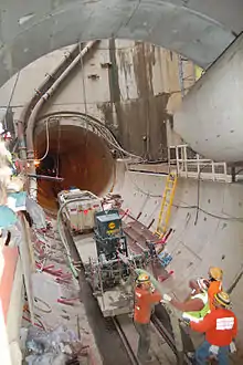 The West Side Combined Sewer Overflow Tunnel (also West Side Big Pipe) is a tunnel in Portland, Oregon, United States. It receives and stores overflow from the combined sewer system before it can reach the Willamette River. The main tunnel is 14 feet (4.3 m) in diameter and 3.5 miles (5.6 km) long for a capacity of 2,850,000 cubic feet (81,000 m3) and connects to dozens of smaller sewer overflow interceptors along the west side of the Willamette River.