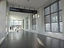 The first Vesey Street Bridge (40°42′49″N 74°0′49″W), or North Bridge, connected the above-ground concourse of the former World Trade Center complex with the World Financial Center,[3] paralleling nearby Vesey Street. It began at a point between 1 WTC and 6 WTC linking the upper levels of the Winter Garden Atrium. The grand marble staircase inside the Winter Garden pavilion provided access to the lower levels of the building and to the adjacent waterfront.[4] The bridge was destroyed in the collapse of 1 WTC during the September 11 attacks in 2001.[5]