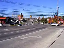 The rest of 705 is simply known as "705". Officially, it is named the 201st Memorial Highway. Between Willowdale Rd. and Stewartstown Road, The area to the south of Route 705 is known as the "Big Dig" due to several recent development projects in the area. Several apartment complexes surround this segment of the highway also.[3] After Stewartstown Rd., Route 705 becomes a two-lane road with left-turn lanes for the first time. As of October 2009, 705 was widened to three lanes from Stewartstown Road to the Mileground. Once at the Mileground US 119, the right lane becomes a right-turn lane and the left a left-turn lane. As for the other direction, it originates with only one lane towards Stewartstown Road, until midway between Mileground and Stewartstown Road, then it widens to a full 4-lane highway. Other upgrades, such as an acceleration lane from Stewartstown Road, and a new left-turn lane onto Stewartstown Road were also added, alone with new stoplights to accommodate the new Suncrest Towne Center.[1]