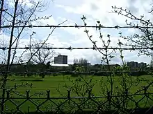 Westburn has some recreational provision; there is a children's play area in the east of the village (on the site of the old row cottages),[31] and this is also the location of the community centre where birthday parties, dance classes etc. can be booked.[32] There are other small play areas in the new housing estates, and a full-size grass football field at Peter Brownlee Park which is well used by children's teams (an adjacent red blaes pitch is not in use although it has floodlights and some perimeter fencing).[33]