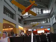 Westchester County Airport has one small, three-level terminal with six gates, of which only four can be used simultaneously because only four aircraft can be scheduled to use the terminal's ramp at any given time. The $35 million terminal was built in 1995 and designed by Lothrop Associates.[36] Gates A, B, C, and F have jetways. The terminal also has a luggage carousel, a baggage reclaim office and two Transportation Security Administration (TSA) screening lanes. Passenger amenities include a gift shop, departure lounge, and food concessions such as a Dunkin' Donuts.[37]