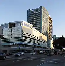 ![]() A transit-oriented development of condominiums, a parking garage, above the D line subway station at Wilshire Boulevard and Western Avenues. | |