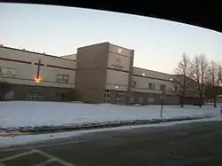 Western's first location was in a three-story house on Hull's Main Street, known as "The Mansion."[6][7] The school building was built in 1924 for $64,000.[6][30] The first expansion of the 1924 building was completed in 1948, and included a library and science laboratories. In 1957, a gymnasium, locker rooms, a stage, and two classrooms were added for $125,000.[6] In 1964, a space for music was built for $75,000.[6] By 1968, an addition to the science wing was finished for $175,000.[6] A new gymnasium was constructed in 1980 for $900,000.[6] Renovations to the whole building took place from May 1994 to September 1995 for $2 million.[6] A maintenance project in 2006 added a strength and conditioning room, as well as a bus barn to the school, for $1 million.[6] In June 2014, Western Christian received grants from the Minnesota Twins Major League Baseball team and the Modern Woodmen of America for renovations to their baseball and softball fields.[31] New classrooms were added to the building in 2015.[32] The next year, air conditioning was installed and the student commons remolded.[33]