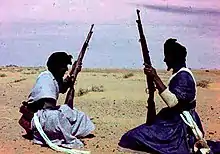 The Western Sahara War (Arabic: حرب الصحراء الغربية, French: Guerre du Sahara occidental, Spanish: Guerra del Sahara Occidental) was an armed struggle between the Sahrawi indigenous Polisario Front and Morocco from 1975 to 1991 (and Mauritania from 1975 to 1979), being the most significant phase of the Western Sahara conflict. The conflict erupted after the withdrawal of Spain from the Spanish Sahara in accordance with the Madrid Accords (signed under the pressure of the Green March), by which it transferred administrative control of the territory to Morocco and Mauritania, but not sovereignty. In late 1975, the Moroccan government organized the Green March of some 350,000 Moroccan citizens, escorted by around 20,000 troops, who entered Western Sahara, trying to establish a Moroccan presence.[22] While at first met with just minor resistance by the Polisario Front, Morocco later engaged a long period of guerrilla warfare with the Sahrawi nationalists. During the late 1970s, the Polisario Front, desiring to establish an independent state in the territory, attempted to fight both Mauritania and Morocco. In 1979, Mauritania withdrew from the conflict after signing a peace treaty with the Polisario Front. The war continued in low intensity throughout the 1980s, though Morocco made several attempts to take the upper hand in 1989–1991. A cease-fire agreement was finally reached between the Polisario Front and Morocco in September 1991. Some sources put the final death toll between 10,000 and 20,000 people.[23]