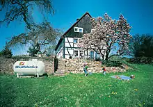 Westfalengas is used by private households and companies for heat generation; in industry, craft and agriculture is it used as an energy source. Even under low pressure (approx. 8 bar), 260 litres of gaseous gas will make one litre of liquid gas.[28] This means that large quantities can be stored and transported using little space. Residential complexes and housing estates can be equipped with their own supply network.