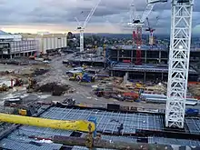 Westfield Doncaster's third redevelopment started with planning approval in May 2004,[3] preliminary works taking place at the centre from September to December 2006, which provided a platform for the main construction works that commenced on 15 January 2007. Doncaster Hill developers met several times with City Council over the next twelve months to discuss creating more sustainable buildings for the community, however little became of the idea of a self-sustaining precinct.[4] It is uncertain whether the wind turbines used at the Manningham Civic Precinct are suitable for powering other buildings.[5] The upgrade was finally completed in October 2008[3] with the centre doubling the previous size, costing A$650 million.[3]
