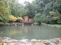 The lily pond was constructed in 1896[19] and was originally fed by Phipps Run, one of the streams that supplies Panther Hollow Lake. Eventually, the pond became damaged from storm runoff and was switched to a municipal water supply, while Phipps Run was diverted underground. However, the pond continued to deteriorate and had to be drained in 2009.[20] It was rebuilt and refilled during the 2015–16 restoration.
