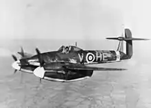 The squadron mostly flew low-level attack sorties across the channel ("Rhubarbs" against ground targets and "Roadstead" attacks against shipping).[41] The Whirlwind proved a match for German fighters at low level, as demonstrated on 6 August 1941, when four Whirlwinds on an anti-shipping strike were intercepted by a large formation of Messerschmitt Bf 109s and claimed three Bf 109s destroyed for no losses.[42] A second Whirlwind squadron, 137, formed in September 1941, specialising in attacks against railway targets.[41][44] In the summer of 1942, both squadrons were fitted with racks to carry two 250 or 500 lb (110 or 230 kg) bombs, and nicknamed 'Whirlibombers'.[45][46] These undertook low-level cross-channel "Rhubarb" sweeps, attacking locomotives, bridges, shipping and other targets.