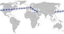 The Westline is a fictional line describing the movement of the commercial centre of maritime trade over the past 5000 years.