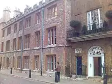 Ashburnham House houses the library[84] and the Mathematics Department,[85] and until 2005 accommodated the Economics, English and History of Art departments as well. Ashburnham House may have been built by Inigo Jones or his pupil John Webb around the time of the Restoration, as a London seat for the family, who became the Earls of Ashburnham. It incorporates remains of the mediaeval Prior's House. Its garden is the site of the monks' refectory and some of the earliest sittings of the House of Commons. In 1731 when Ashburnham housed the King's and Cottonian libraries, which form the basis of the British Library,[86] there was a disastrous fire, and many of the books and manuscripts still show the marks.[87] After the Public Schools Act 1868 there was a scandalous parliamentary and legal battle between the Dean and Chapter of Westminster Abbey and the School until the School eventually obtained Ashburnham House under the Act for £4,000. The dispute was reported in The Times and it was suggested by Thomas Wise, Secretary of The Society for the Protection of Ancient Buildings that the property was "in danger of being pulled down or of being virtually destroyed by being converted into a boarding-house in connexion with Westminster School", adding that the "house is admirably suited for a residence for the Dean or one of the Canons, and is totally unfitted for a school or a boarding house."[88] The school responded: "The Chapter themselves have in past years greatly altered and disfigured Ashburnham-house. It had originally two wings; one was destroyed and never restored. About 1848 the roof was taken off, a story added, and a dome in the ceiling of the drawing-room demolished, the external elevation being ruined. The house now has no beauty externally, and hardly any features of interest internally, except the staircase, which in any case would be preserved".[89] On 28 November William Morris also became involved in the campaign, writing a letter to the editor of The Daily News.[90] In the event, the school demolished the adjacent Turle's House and renovated sections of the east wing, but left the staircase and drawing room untouched.[91] During the Second World War, the library was used for military purposes and as an American officers' club, the Churchill Club.