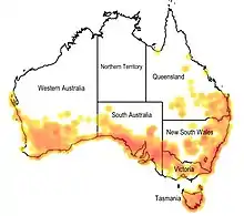 Westringia has been found in the wild in all 6 states of Australia, as well as on Norfolk Island, but not in the Northern Territory.[2]