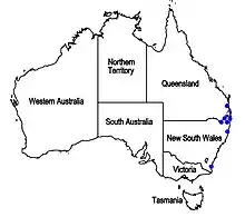 | Known range of Westringia blakeana (in blue) | |