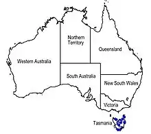 | Known distribution of Westringia brevifolia (in blue) | |