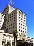 Construction of the hotel was announced in spring 1927 under the originally planned name, Roosevelt Hotel.[1][7][8] The project was financed by Sutherlin-Barry & Company of New Orleans, Louisiana, for owner G. L. Johnson of Chicago, Illinois. The architectural team who designed the hotel were Fisher, Lake, and Traver, who had also designed the Roosevelt Hotel in Hollywood, California a few years before. The hotel was to be operated by Johnson's Pacific Hotel Company.[9] Work came to a halt in early 1928 with only 6-stories completed. In April, J. V. McNeil Company of Los Angeles, California, were awarded a contract to complete the hotel.[10][11][12]