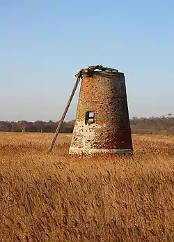 Westwood Marshes Mill was built in the late 18th century,[1] possibly in 1798. It was worked by wind until 1940 and then damaged when used for target practice during World War II. The mill was repaired in the 1950s but in October 1960 it was burnt out in an arson attack. It remains standing in a derelict state.[2]