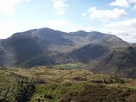 ![]() Wetherlam on the left, seen from Lingmoor Fell | |